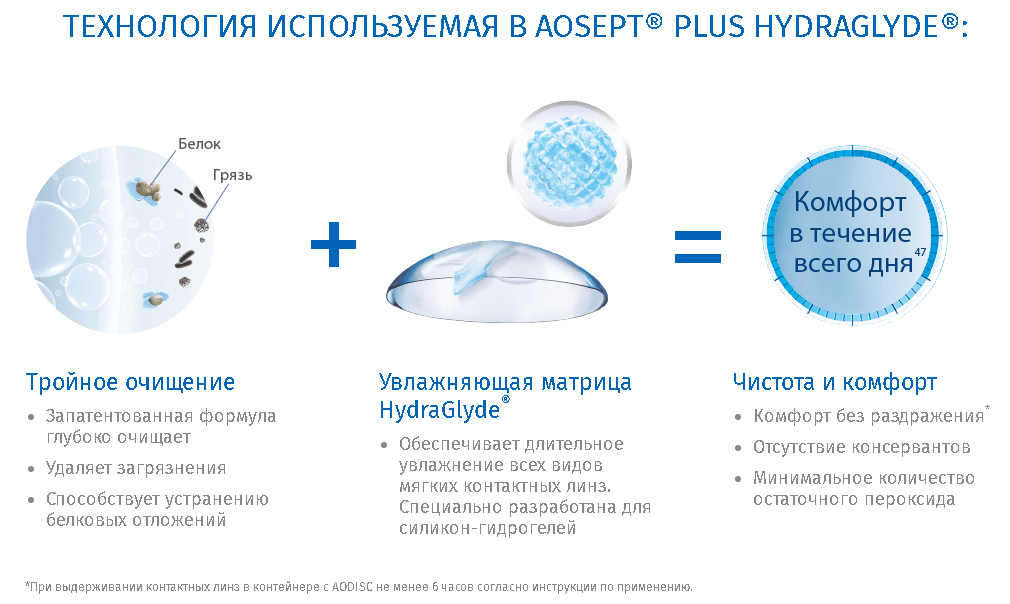 Многофункциональный раствор для контактных линз AOSEPT plus HydraGlyde специально создан для очистки и хранения линз. Кроме того, Aosept Plus эффективно борется с протеиновыми отложениями и совершенно безопасен для кожи и глаз.